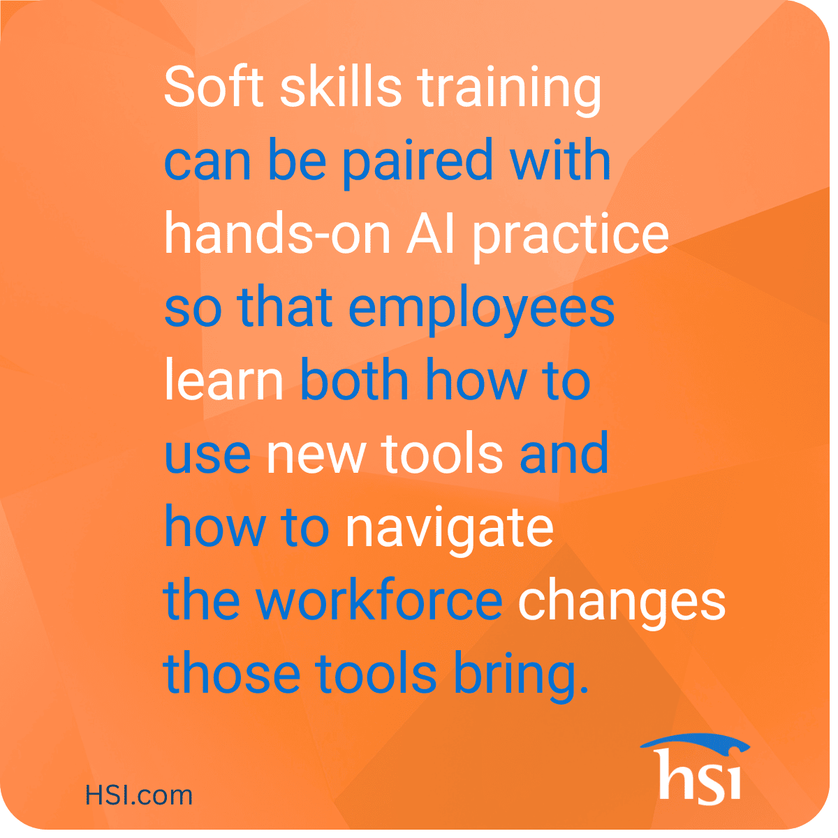 Soft skills training can be paired with hands-on AI practice so that employees learn both how to use new tools and how to navigate the workforce changes those tools bring.