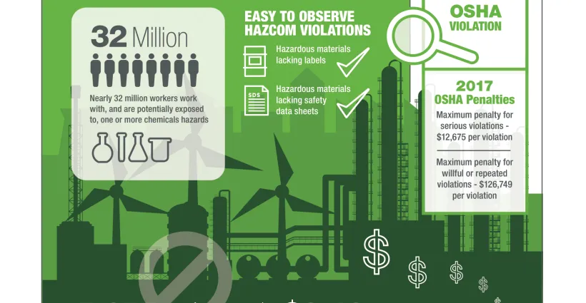 Hazard Communications is the second most cited OSHA violation, with maximum penalties exceeding $126,000. With 32 million workers having the potential of being exposed to chemicals on a daily basis, understand the impact of HazCom violations across all industries in the U.S.