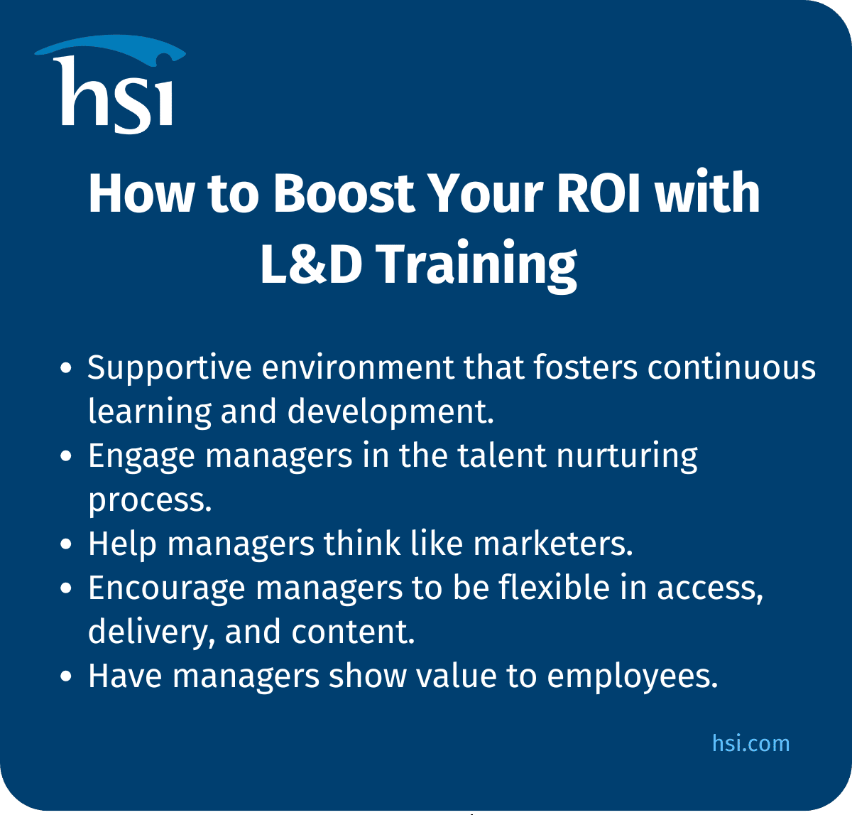 As the number of experienced leaders starts to dwindle, it’s more important than ever to support and develop talent. This article discusses ways to boost your ROI with L&D Training: