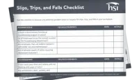 Use this simple checklist to audit potential problem areas for common slip, trip, and fall hazards in your working environments.