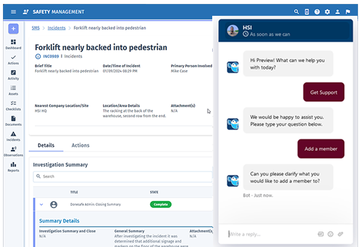 Sky™ is available throughout the HSI Platform via a conversational interface, giving users a single point of access to intelligence across their safety and performance programs.