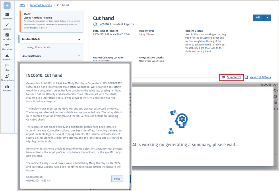 AI simplifies the process by assisting with policy creation, brief synopsis of key points, custom training content, safety checklists, and more.